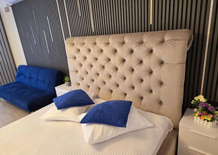 The beachfront Studio Bellmarina- Beach Spa And Pool Resort Navodari is located in Navodari, around 25 minutes' walk from Navodari Holiday Camp, and offers guests an indoor pool and a fitness club. Popular points of interest close to the apartment include the Mackerel Mamaia Nord Park, which is just 450 metres away.